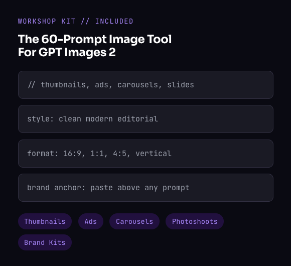 You don't just walk away knowing what ChatGPT Images 2 can do. You walk away with the info you need to start making money with it this week. Everything's built in real time during the workshop, on screen, so you can follow along and have it ready to ship by the end of the 90 minutes.